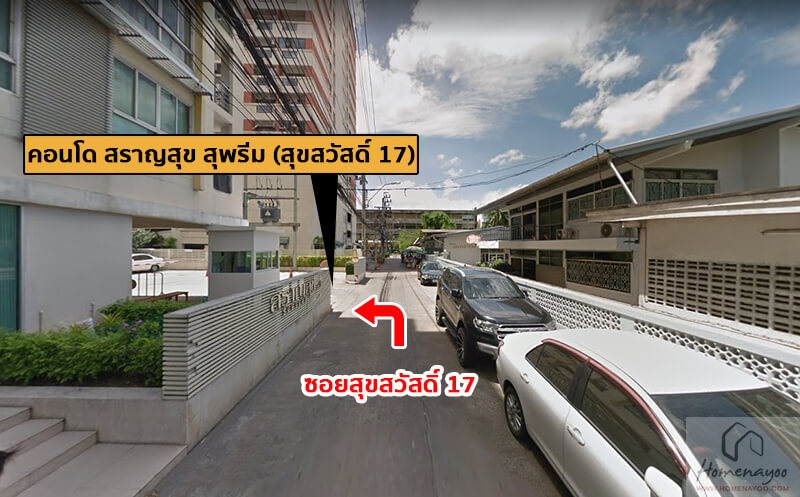 จากนั้นระยะทางอีก 150 เมตร เลี้ยวซ้ายเข้าสู่โครงการ คอนโด สราญสุข สุพรีม (สุขสวัสดิ์ 17) ถึงโครงการแล้วครับ