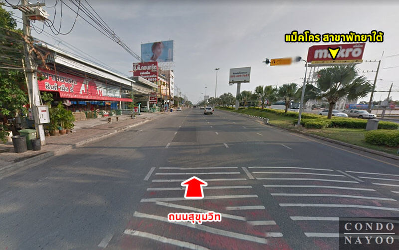 จากนั้นวิ่งตรงตาม ถนนสุขุมวิท ผ่านขวามือ แม็คโคร สาขาพัทยาใต้