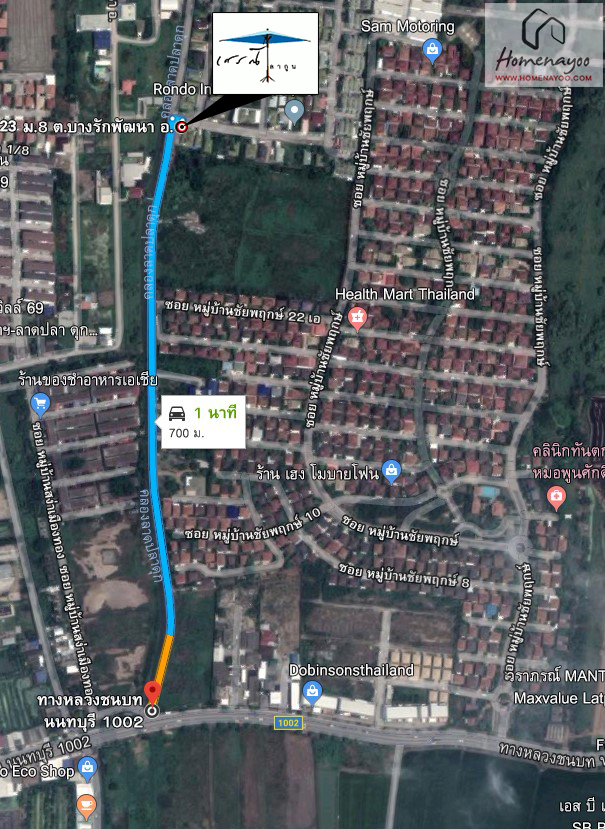 ภาพประกอบการเดินทาง เราใช้ ถ.รัตนาธิเบศร์ มุ่งหน้าไปบางใหญ่ โดยเริ่มจากรถไฟฟ้าสายสีม่วงที่สถานีสามแยกบางใหญ่ (PP03) ค่ะ