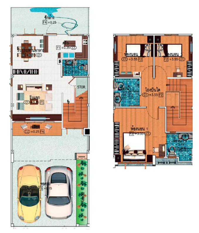 แปลนบ้านชั้น 1 | แปลนบ้านชั้น 2