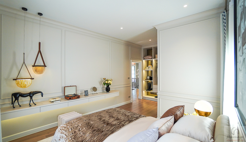 Master Bedroom ตำแหน่งอยู่ข้างบ้าน ได้พื้นที่กว้างขนาดใหญ่ยาวตั้งแต่โซนหน้าบ้านไปถึงหลังบ้าน แบ่งฟังก์ชันภายในได้ตามต้องการ