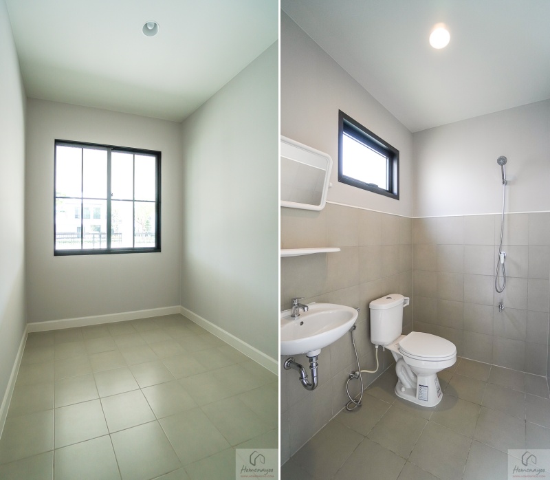 ฝั่งด้านในจะเป็นห้องน้ำ หน้าห้องน้ำมีพื้นที่วางตู้เสื้อผ้าขนาดใหญ่ได้อีก