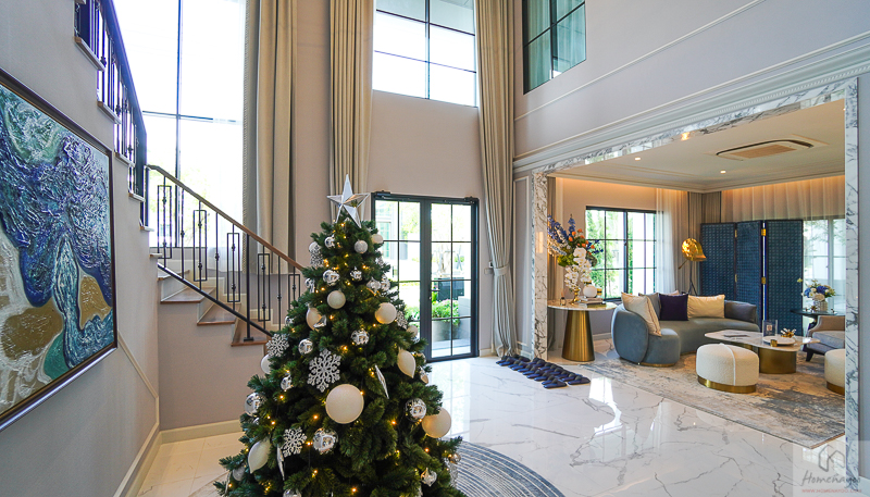 แบบบ้าน Meridian เป็นแบบบ้านขนาดใหญ่สุดของโครงการ มีพื้นที่ใช้สอยมากถึง 407 ตร.ม. รองรับถึง 5 ห้องนอน ภายในบ้านตรงส่วน Foyer ได้ฝ้าเพดานสูงแบบ Double Volume เปิดโล่งเชื่อมต่อโถงบันไดถึงชั้น 2 มีห้องนั่งเล่นขนาดใหญ่ 2 จุด โดยจุดแรกจะอยู่โซนหน้าบ้านแยกส่วนไว้เป็นมุมรับแขกส่วนตัวได้
