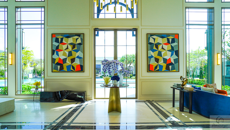 เร่ิมจากหน้าโครงการ ดีไซน์มาเป็นซุ้มประตูขนาดใหญ่แบบหน้ากว้างขนานกับแนวถนนใหญ่ด้านหน้า ช่วยเพิ่มความ grand ให้กับตัวโครงการมาก ๆ ออกแบบมาในสไตล์ Modern Classic ดูสวยงามเรียบง่าย ไม่ซับซ้อน เน้นรายละเอียดต่าง ๆ ทั้งดีเทลและเส้นสายตกแต่ง เพิ่มความหรูหรา โออ่าได้ดี