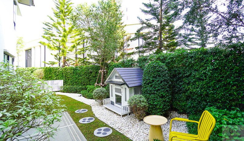 พื้นที่สวนส่วนกลางขนาดใหญ่ ภายในสวนตกแต่งมาได้ร่มรื่น มีทั้งต้นไม้ใหญ่ ไม้พุ่ม และไม้ดอก มีสนามหญ้าโล่ง ๆ ไว้ทำกิจกรรมต่าง ๆ ทางเดินเชื่อมต่อรอบสวนไว้วิ่งออกกำลังกายได้ มีพื้นที่นั่งพักผ่อนในสวนตามจุดต่าง ๆ มีสนามเด็กเล่นที่ช่วยเสริมสร้างจิตนาการ และ Sansiri Backyard แปลงผักสวนครัว ที่ให้ลูกบ้านสามารถเก็บนำไปประกอบอาหารได้
