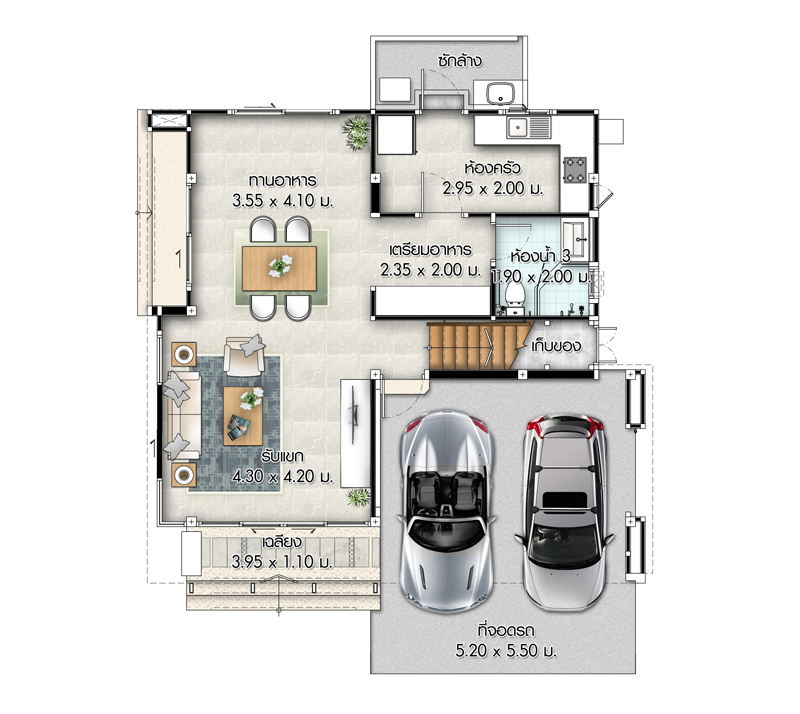 ส่วนรับประทานอาหาร , ห้องครัวไทย , ที่จอดรถ 2 คัน