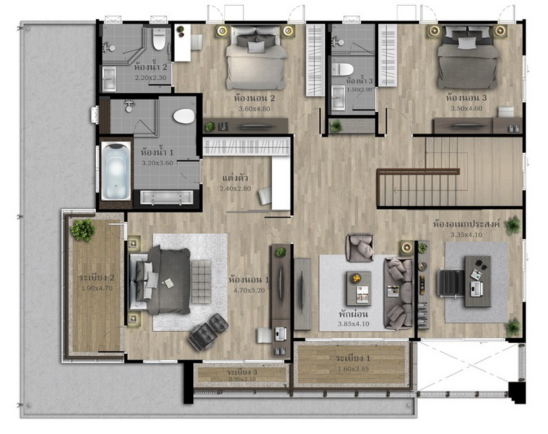 | จำนวนห้อง | 4-5 ห้องนอน, 3-5 ห้องน้ำ |