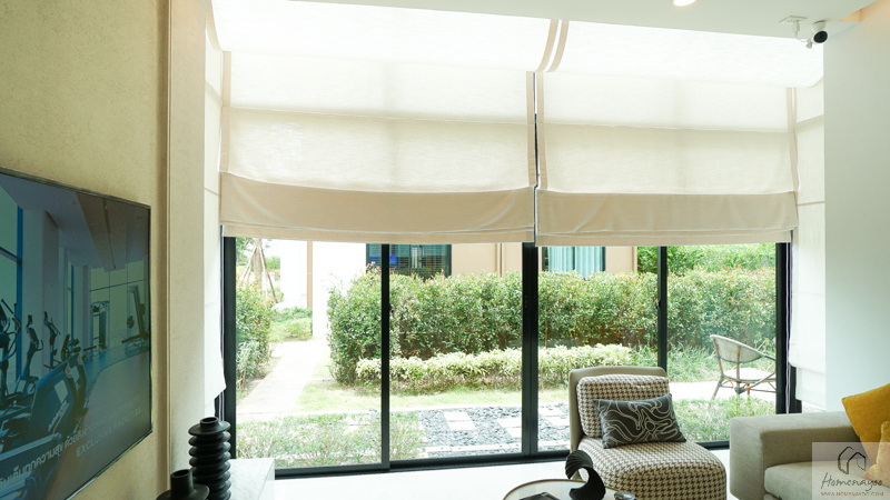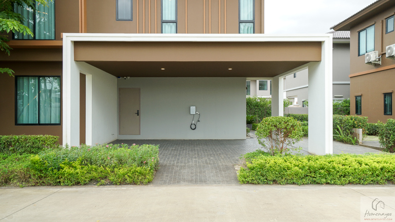 สำหรับถนนซอยในโครงการจะมีความกว้างอยู่ที่ 8 ม. โดยโซนบ้านตัวอย่างที่เราพามาชมกันในวันนี้ จะเป็นโซนที่อยู่ติดกับพื้นที่สีเขียวแนวยาวตลอดที่ดินโครงการค่ะ