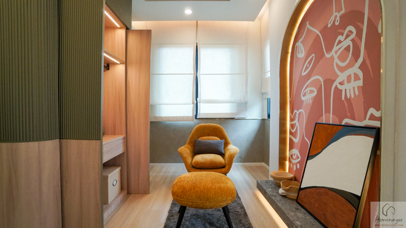 ปลายเตียงนอนสามารถทำเป็นมุมนั่งพักผ่อน นั่งดูหนังก่อนนอนได้นะคะ