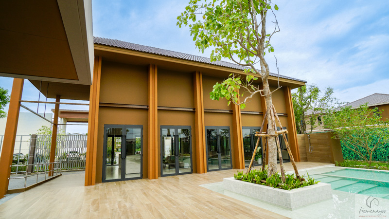 ถ้าขึ้นมาจากฝั่งที่จอดรถ เราจะเจอกับโถงขนาดใหญ่ ที่ใช้เชื่อมต่อกับอาคาร Clubhouse 1 ชั้น, Clubhouse 2 ชั้น และสระว่ายน้ำขนาดใหญ่ตรงกลางค่ะ