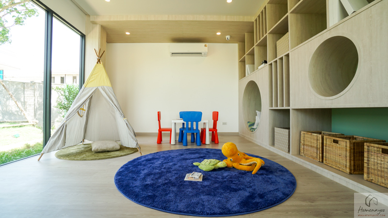 ห้องนี้จะออกแบบมาเป็นห้องสำหรับซัก-อบผ้าค่ะ ภายในมีการเตรียมงานระบบน้ำ-ระบบไฟมาให้พร้อมต่อใช้เครื่องซักผ้าได้เลย ใครไม่ทำเป็นห้องซัก-อบ ก็สามารถทำเป็นห้องเก็บของ ห้องเลี้ยงน้องหมา น้องแมว หรือปรับฟังก์ชันได้เองตามต้องการค่ะ