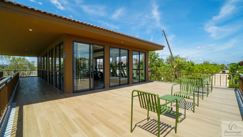 อีกอาคารจะสูง 2 ชั้น มีครบทั้ง Yoga & Class Room และ Fitness ขนาดใหญ่ พร้อมเครื่องออกกำลังกายมาตรฐานที่ครบครัน เปิดรับวิวได้รอบด้านแบบ 180 องศา มี Rooftop Co-Kitchen ให้จัดปาร์ตี้สังสรรค์ได้