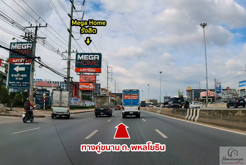 การเดินทางในวันนี้ เราเริ่มจากถนนพหลโยธิน ฝั่งที่มาจาก ม.ธรรมศาสตร์ รังสิต ตรงด้านหน้า Mega Home บางนา ตรงข้ามกับ ม.กรุงเทพ ⇒ วิ่งบนทางคู่ขนานถนนพหลโยธิน มาประมาณ 3.1 กม.* ถึงโครงการ Siamese Holm พหลฯ-วิภาวดี (ทางด้านซ้ายมือ)