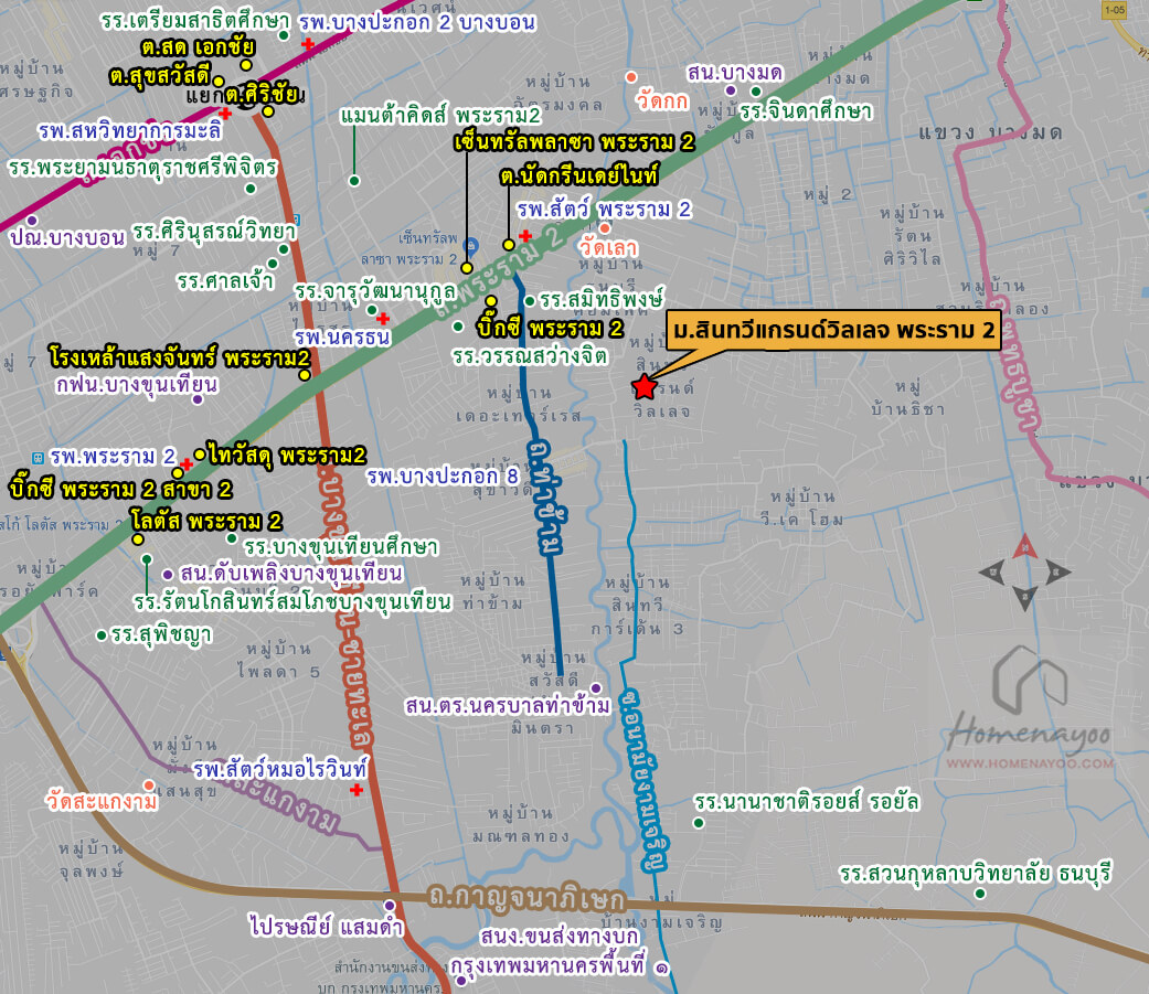 รายล้อมด้วยสิ่งอำนวยความสะดวกมากมาย ได้แก่ เซ็นทรัล พระราม 2, บิ๊กซี พระราม 2, บิ๊กซี เอ็กซ์ตร้า พระราม 2, เทสโก้ โลตัส พระราม 2, โฮมโปร พระราม 2, รร.วัดท่าข้าม และ รพ.นครธน