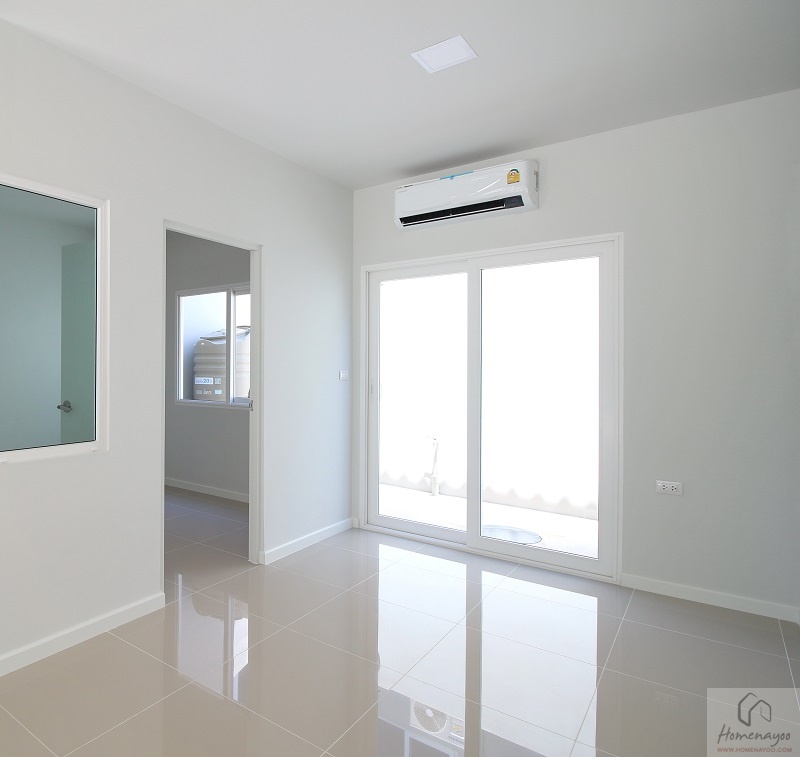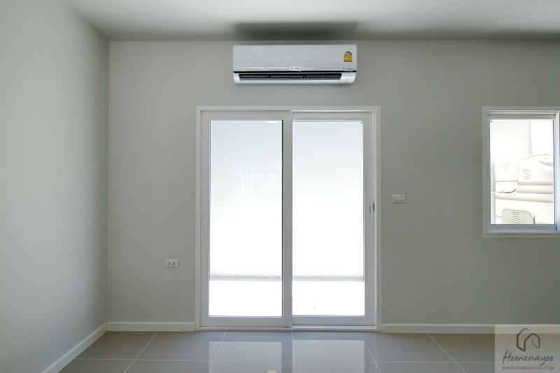 ในห้องนอน 2 จะได้หน้าต่างกระจกบานเลื่อน กรอบไวนิลสีขาวชุดใหญ่ 1 บาน