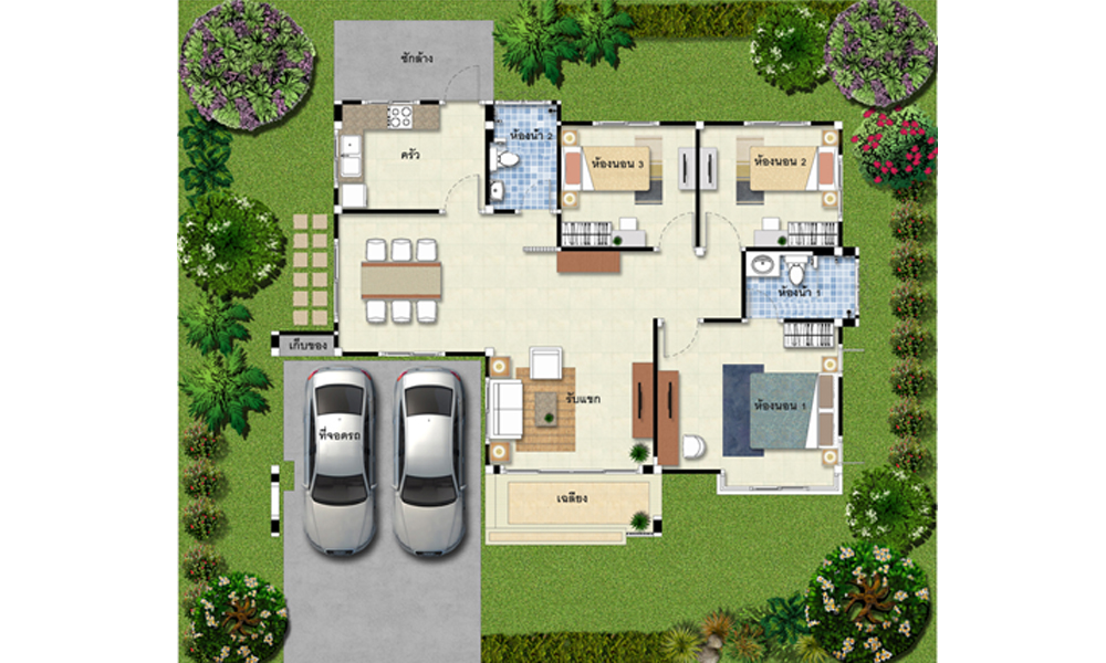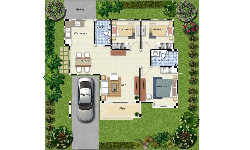 พื้นที่ใช้สอย 130 ตร.ม / 3 ห้องนอน / 2 ห้องน้ำ / 2 ที่จอดรถ
