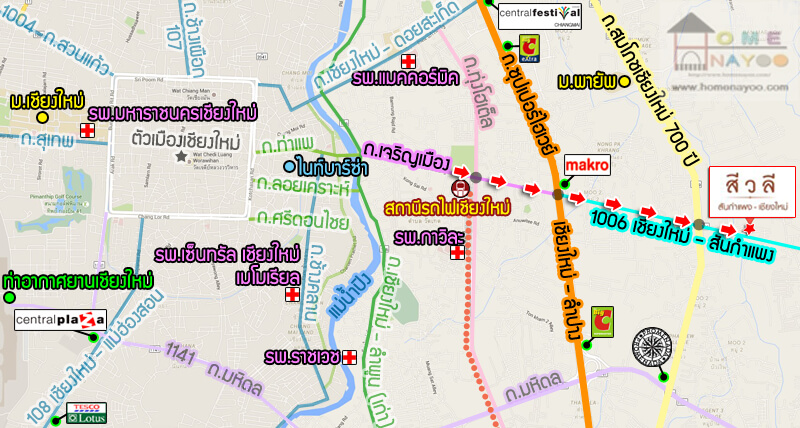 ผ่าน แยกบวกครกศิวิไล ให้ตรงไปประมาณ 500 ม. ถึงโครงการ บ้านสีวลี สันกำแพง – เชียงใหม่