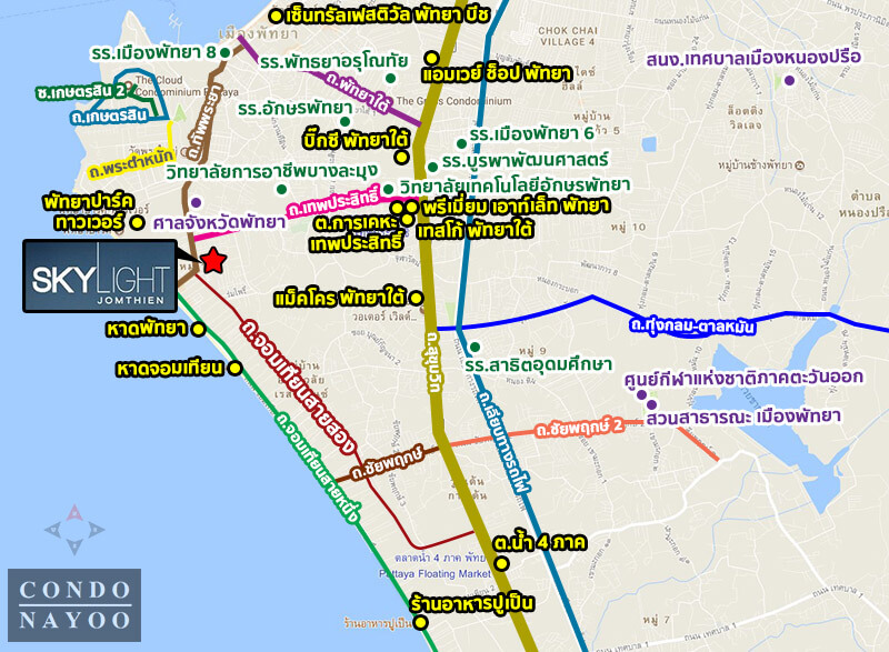 Skylight Condo จอมเทียน จาก Powerhouse Development ตั้งอยู่บน ถ.ทับพระยา ต.นาเกลือ อ.เมืองพัทยา จ.ชลบุรี ใกล้หาดจอมเทียน, เดอะ พลาซ่า จอมเทียน, เขาพระตำหนัก และ รพ.พัทยาเมโมเรียล