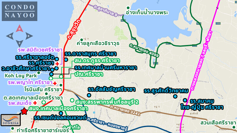 | สถานที่สำคัญใกล้เคียง | 1. โรบินสัน ศรีราชา 2. โรงพยาบาลสมเด็จศรีราชา |