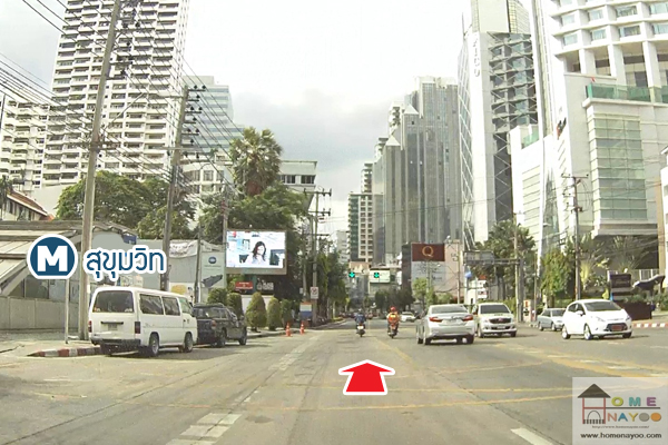 แยกอโศกแล้ว ให้วิ่งตรงไป ถนนอโศกมนตรี (สุขุมวิท 21) ผ่าน BTS อโศก ซ้ายมือ เป็นจุดเชื่อมต่อกับ MRT สุขุมวิท