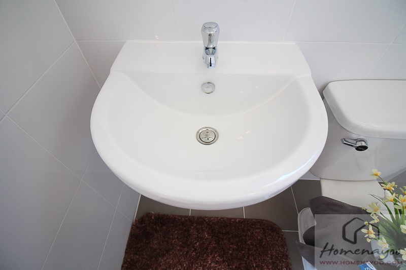 รายละเอียดของสุขภัณฑ์เหมือนห้องน้ำชั้นล่างทุกประการ ใช้สุขภัณฑ์ของ Cotto นี่ก็คืออ่างล้างมือ รุ่นเหมือนกันกับชั้นล่างเลย