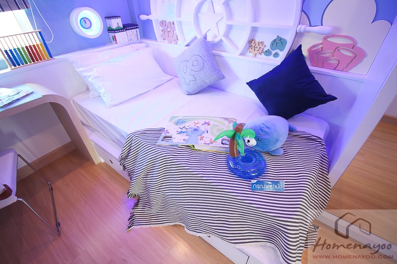 ด้านข้างเตียงก็ยังเหลือพื้นที่สำหรับวางโต๊ะทำงานได้