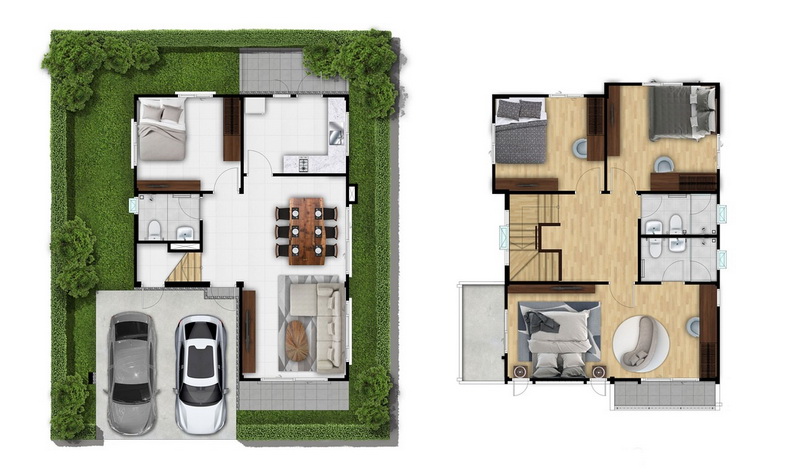 แปลนบ้านชั้น 1 | แปลนบ้านชั้น 2