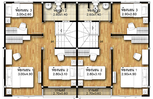 | จำนวนห้อง | 2-3 ห้องนอน / 2 ห้องน้ำ |