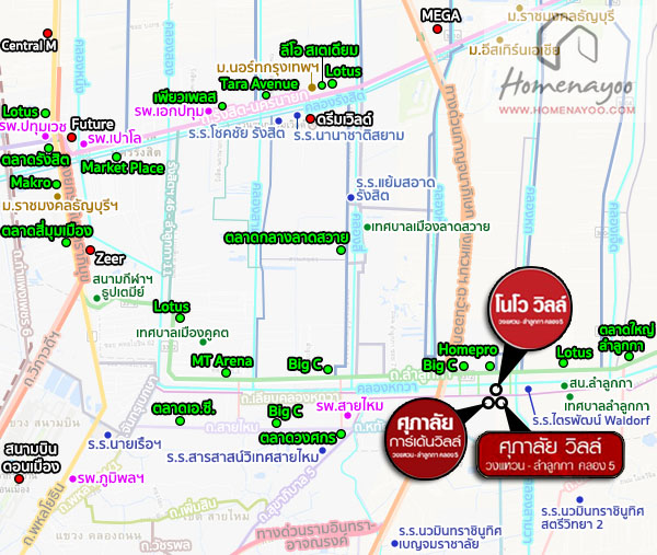 | สถานที่สำคัญใกล้เคียง | 1. โลตัส ลำลูกกา คลอง 5 1.00 กม. 2. โฮมโปร 1.00 กม. 3. บิ๊กซี ลำลูกกา คลอง 5 1.30 กม. 4. รถไฟฟ้า สถานีคลอง 5 1.40 กม. 5. วงแหวนรอบนอกฝั่งตะวันออก 1.70 กม. 6. โรงพยาบาล สายไหม 3.60 กม. 7. โรงเรียนแย้มสะอาด คลอง4 4.10 กม. |