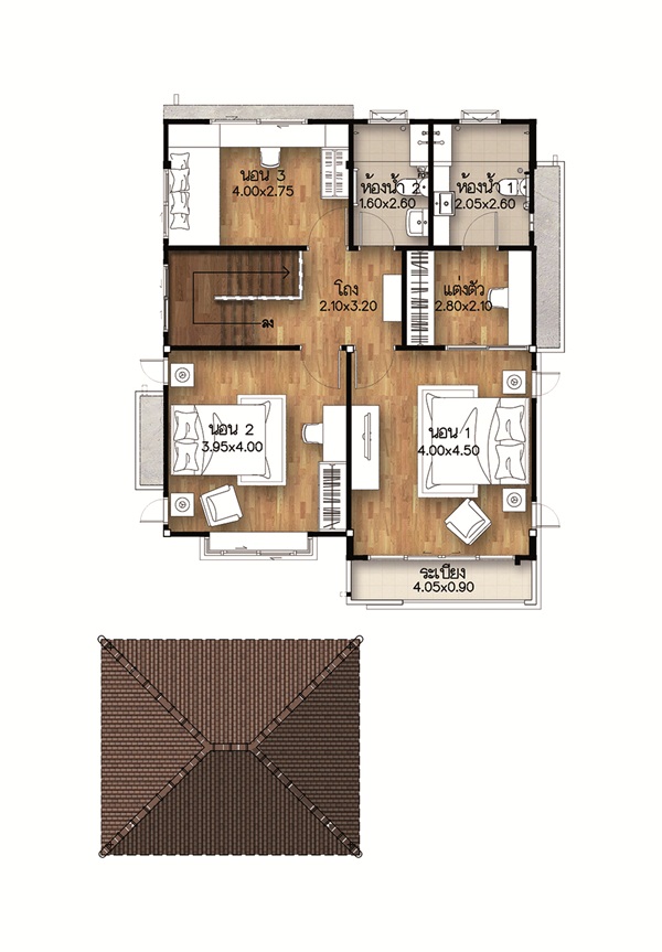 ขนาด 3 ห้องนอน 3 ห้องน้ำ พร้อมส่วนพักผ่อนขนาดใหญ่ และที่จอดรถ 2 คัน