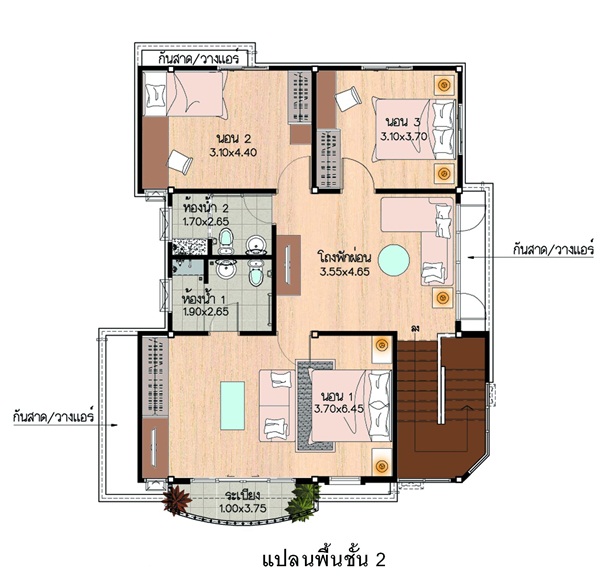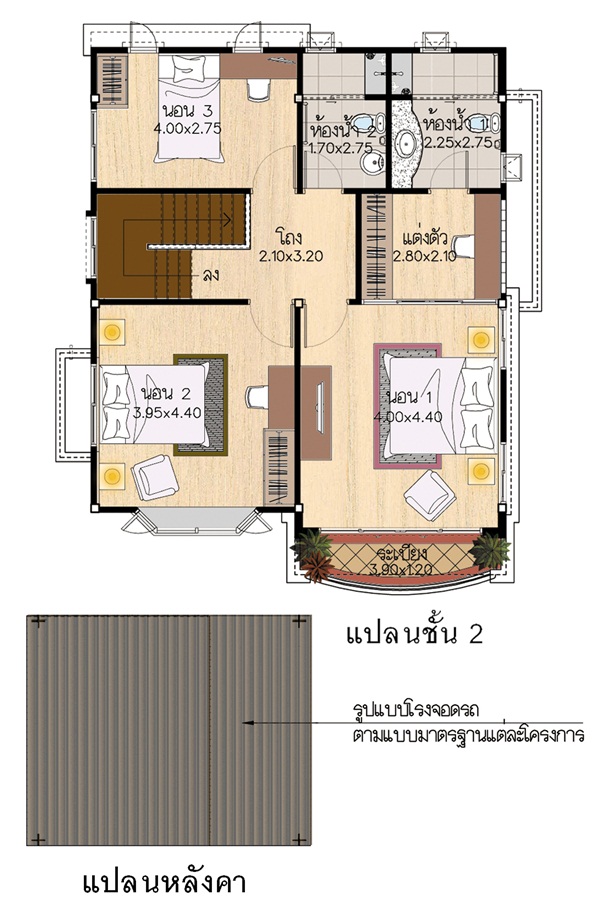 – ขนาด 3 ห้องนอน 3 ห้องน้ำ พร้อมที่จอดรถ 2 คัน