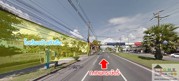 ผมเริ่มจากหน้า ถนนเทพกระษัตรี ที่ โรงเรียนบ้านท่าเรือ (มุ่งหน้าสู่ อนุสาวรีย์ท้าวเทพกระษัตรี ท้าวศรีสุนทร)