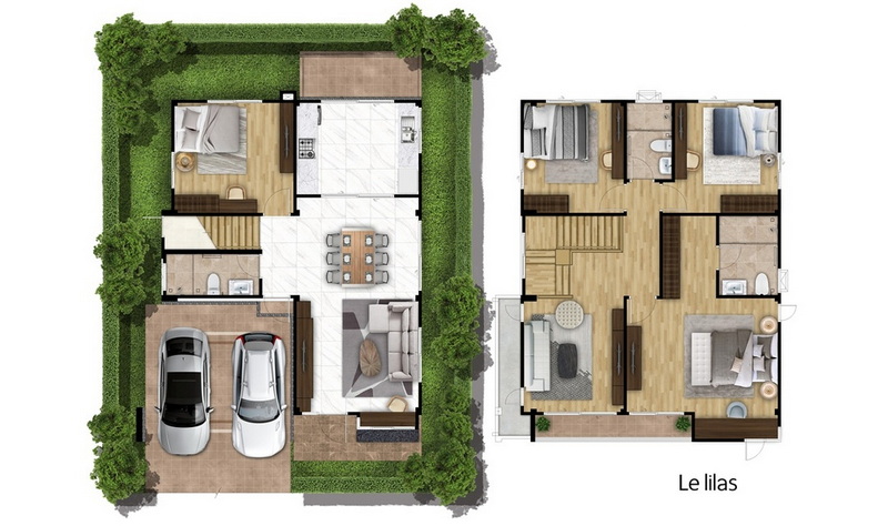 • La Lilas บ้านเดี่ยว 2 ชั้น พื้นที่ใช้สอย 199 ตร.ม. ฟังก์ชัน 4 ห้องนอน, 3 ห้องน้ำ, 2 ที่จอดรถ