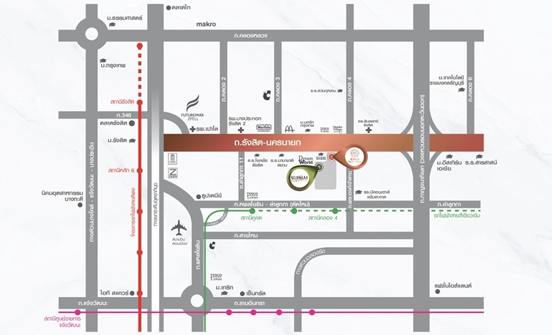 • รถไฟฟ้าสายสีเขียว สถานีคลอง 4 และสถานีคูคต