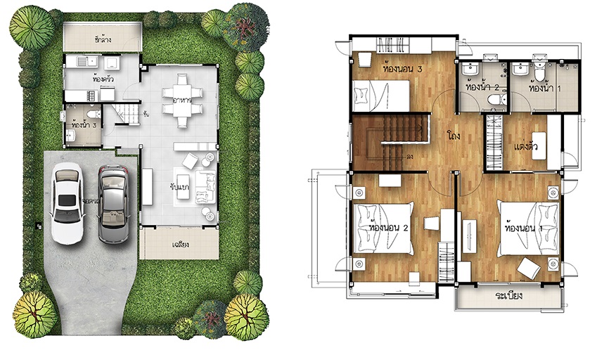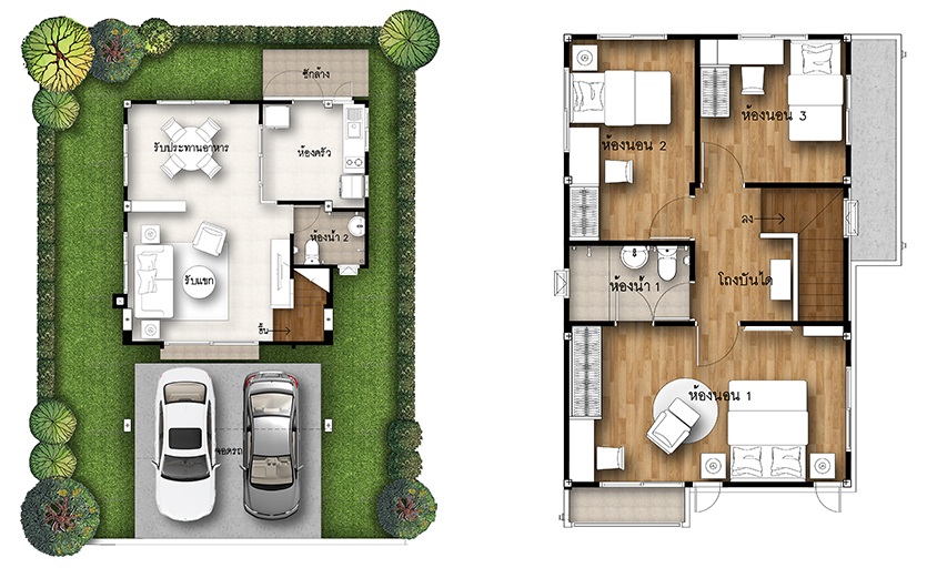 แปลนบ้านชั้น 1 | แปลนบ้านชั้น 2