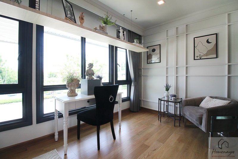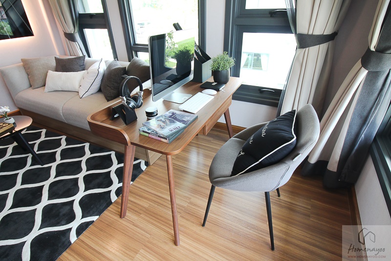 พื้นที่ห้องทำงานก็ถูกออกแบบให้มีขนาดใหญ่เช่นกันค่ะ รองรับการปรับเปลี่ยนฟังก์ชันได้อย่างอเนกประสงค์ตามความต้องการของผู้อยู่อาศัยเลย