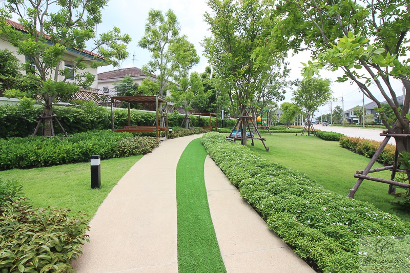 ทางโครงการมีการจัดสวนให้เป็นมาตรฐานด้วยนะคะ มีทั้งไม้ยืนต้น, ไม้พุ่มประดับ และปูหญ้าคลุมดิน