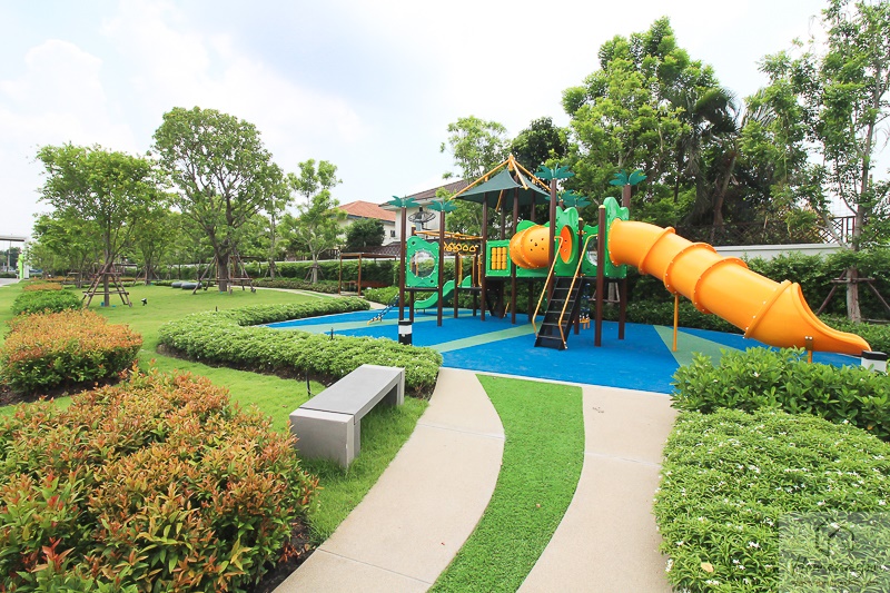 สวนพักผ่อนของโครงการมีอยู่ 2 จุดด้วยกัน จุดแรกคือบริเวณใกล้ทางเข้าโครงการ จุดที่ 2 คือช่วงกลางโครงการ ซึ่งจะอยู่ติดกับคลับเฮ้าส์เลยค่ะ การวางสวนพักผ่อนเอาไว้ที่ด้านหน้าโครงมีประโยชน์ในการช่วยสร้างบรรยากาศให้โครงการดูน่าอยู่ร่มรื่นตั้งแต่เข้ามา ส่วนสวนและคลับเฮ้าส์ที่อยู่กลางโครงการก็ทำให้ลูกบ้านแต่ละหลังสามารถเข้ามาใช้งานได้สะดวกมากกว่านั่นเอง