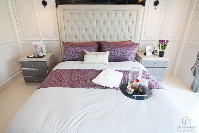 โซนพักผ่อนกันก่อนสามารถวางเตียงนอนขนาด 6 ฟุตได้สบาย ๆ แถมยังเหลือพื้นที่โดยรอบเตียงสามารถวางโต๊ะข้างได้ทั้ง 2 ฝั่ง และยังสามารถเดินผ่านหรือจัดเป็นมุมนั่งเล่นได้เลย