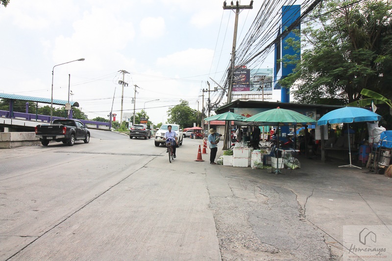 ตอนนี้เรามาอยู่กันที่บริเวณหน้าโครงการกันแล้ว ฝั่งตรงข้ามกับตัวโครงการข้ามสะพานไปก็คือถนนรังสิต – นครนายกค่ะ
