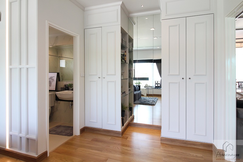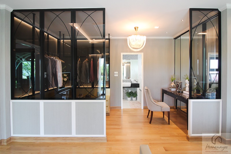 ด้วยขนาดห้องที่ใหญ่ เราจึงสามารถกั้นส่วนห้องเป็น Walk In Closet ขนาดใหญ่ได้สบายค่ะ