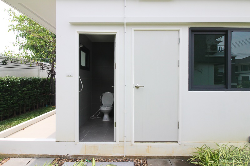 จากลานซักล้างเดินมาข้างบ้านจะเป็นส่วนของห้องแม่บ้านและห้องน้ำแยกส่วนกับเจ้าของบ้าน