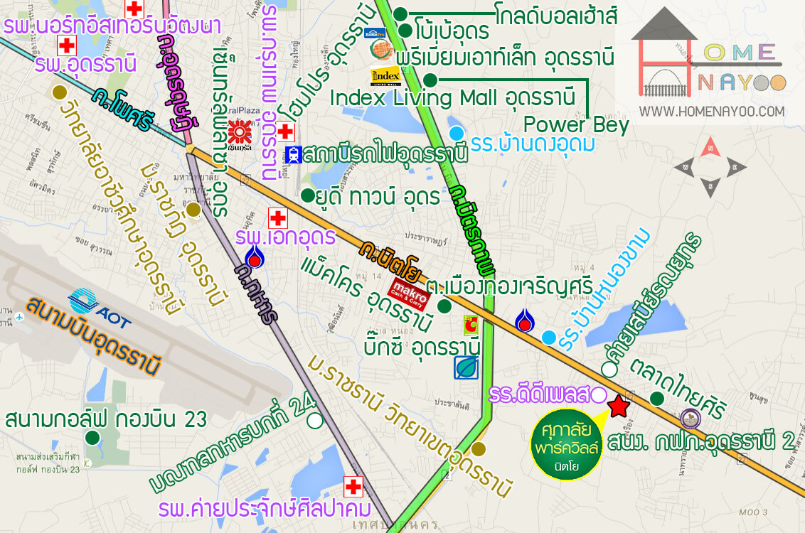 | สถานที่สำคัญใกล้เคียง | 1. บิ๊กซี อุดรธานี 2. Makro อุดรธานี 3. UD Town 4. สนามกีฬาเทศบาล 5. โรงพยาบาลเอกอุดร 6. สถานีรถไฟอุดรธานี 7. โรงพยาบาลกรุงเทพอุดร 8. เซ็นทรัล พลาซ่า อุดรธานี 9. มหาวิทยาลัยราชภัฎอุดรธานี |
