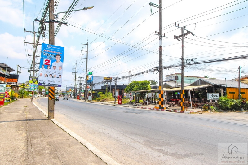 มองไปทางซ้ายมือจะใช้มุ่งหน้าไปห้างไทยสมบูรณ์ และ แยกนาหลวงได้ หน้าโครงการจะมีทางเท้ากว้าง ๆ ให้เดินไปซื้อของกินของใช้ได้อย่าสะดวก