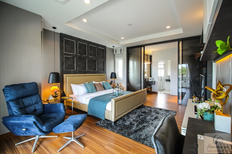 เข้ามาด้านใน Master Bedroom ได้ฟังก์ชันแบบห้อง Penthouse เลยค่ะ เพราะมีพื้นที่พักผ่อนขนาดใหญ่ มีระเบียงพักผ่อนเปิดรับวิวหน้าบ้าน รวมถึงมีส่วนของ Walk-in Closet และห้องน้ำในตัวพร้อมสรรพ