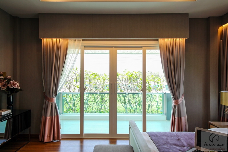 ส่วนพื้นที่ใช้งานมีให้กว้างมาก สามารถวางชุดโต๊ะน้ำชา หรือ จัดสวนไม้กระถางเพิ่มความ Greenery ให้กับห้องนอนได้