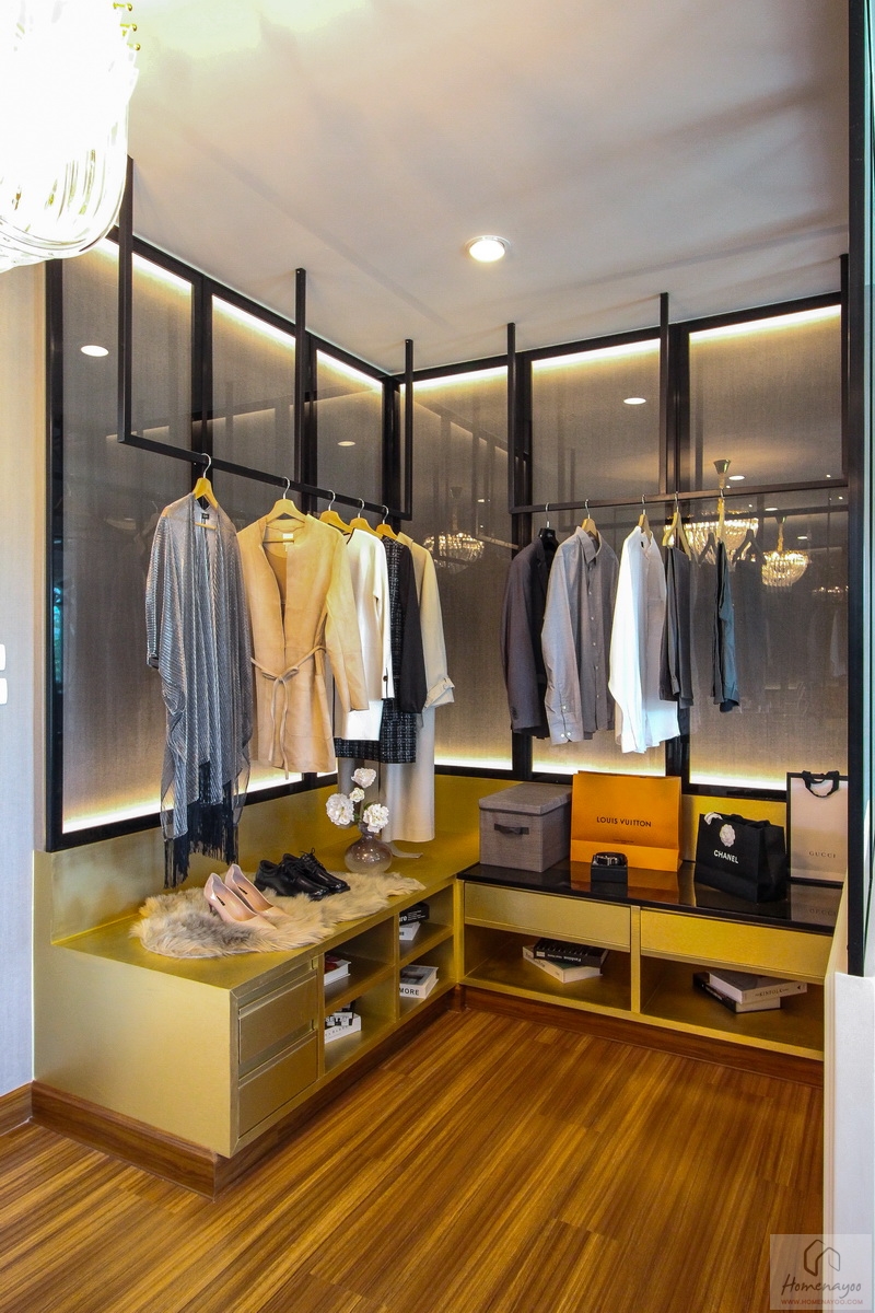 เข้ามาด้านในส่วน Walk-in Closet ขนาดค่อนข้างกว้าง แบ่งพื้นที่สำหรับวางตู้เสื้อผ้า และ โต๊ะเครื่องแป้งไว้แยกกัน
