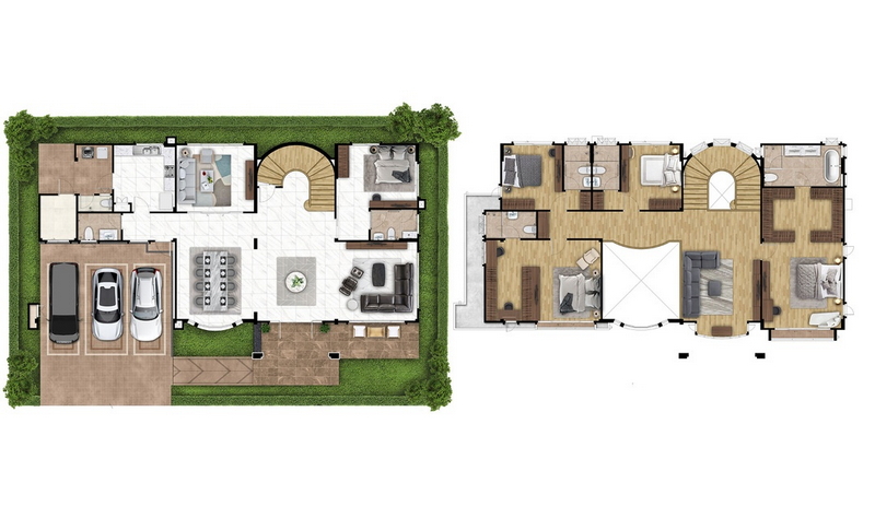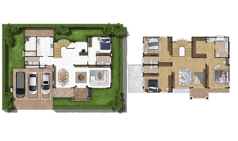 แปลนบ้านชั้น 1 | แปลนบ้านชั้น 2