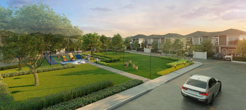 ภาพและบรรยากาศจำลองสวนสาธารณะ และสนามเด็กเล่นภายในโครงการ