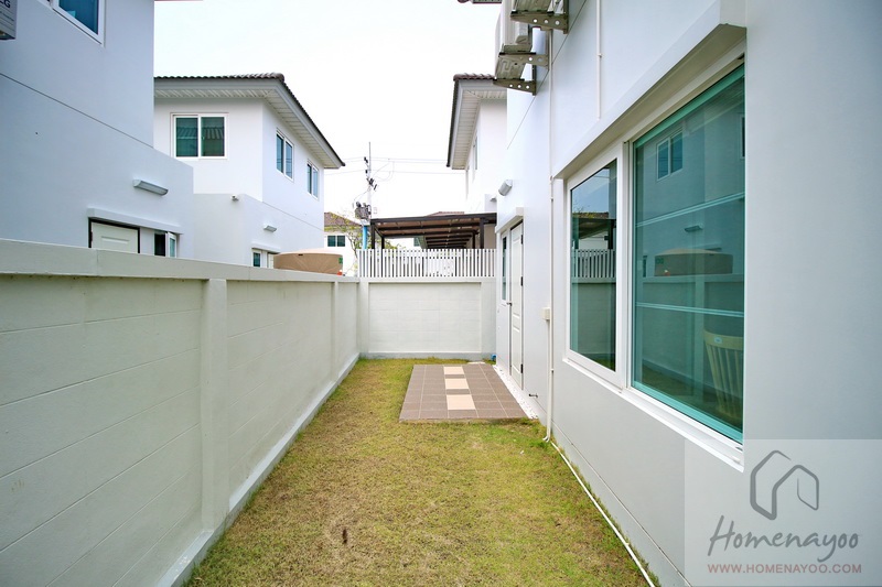 พื้นที่หลังบ้านกว้างขวาง บ้านจริงมีถังสำรองน้ำ และ ปั๊มน้ำติดตั้งให้ รวมถึงปูหญ้าสนามให้ด้วยเช่นเดียวกันค่ะ